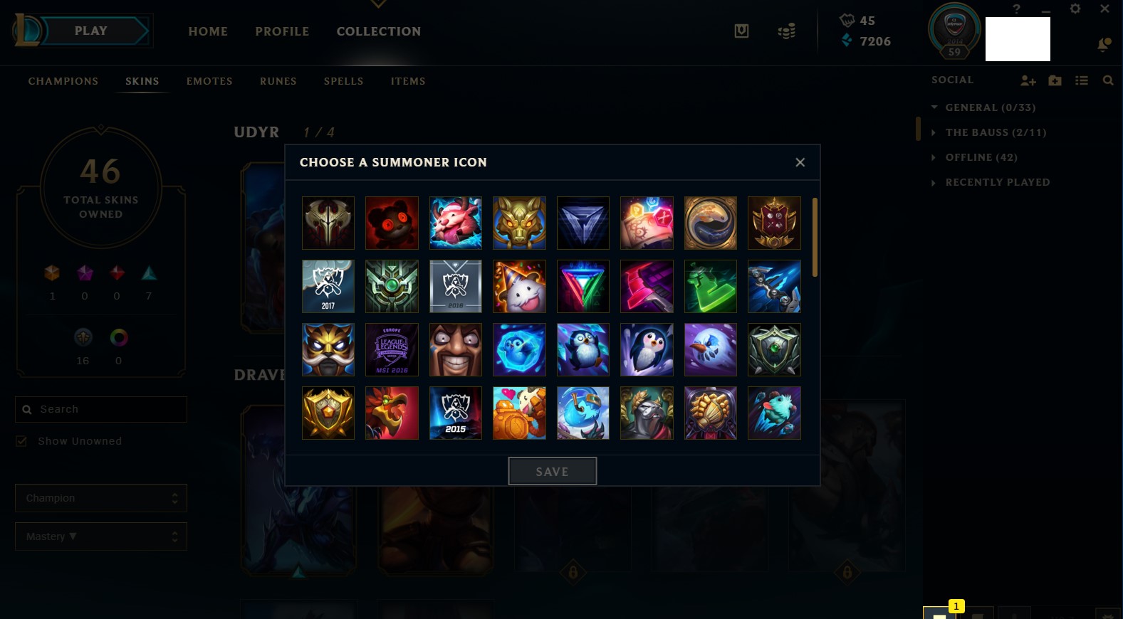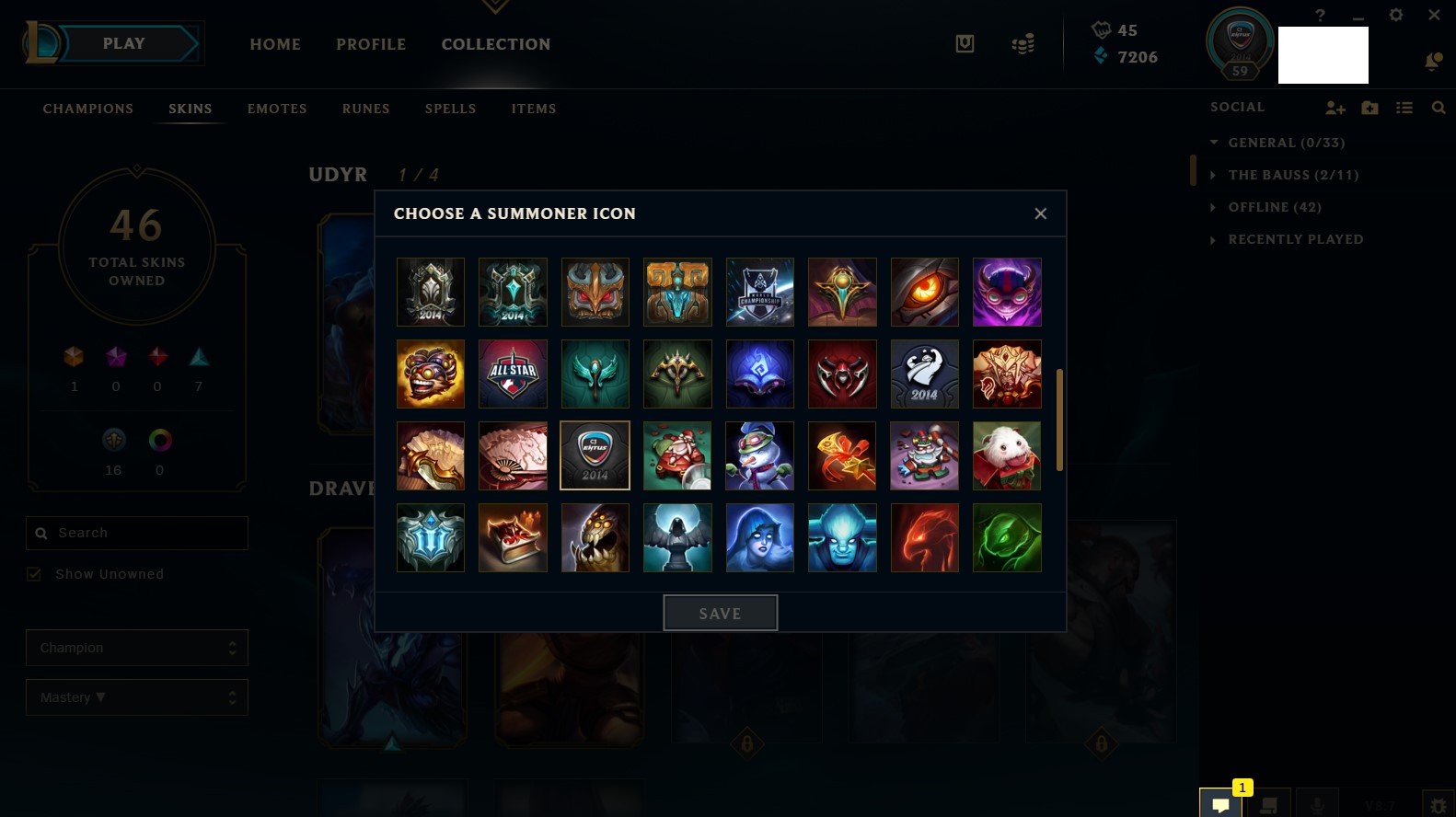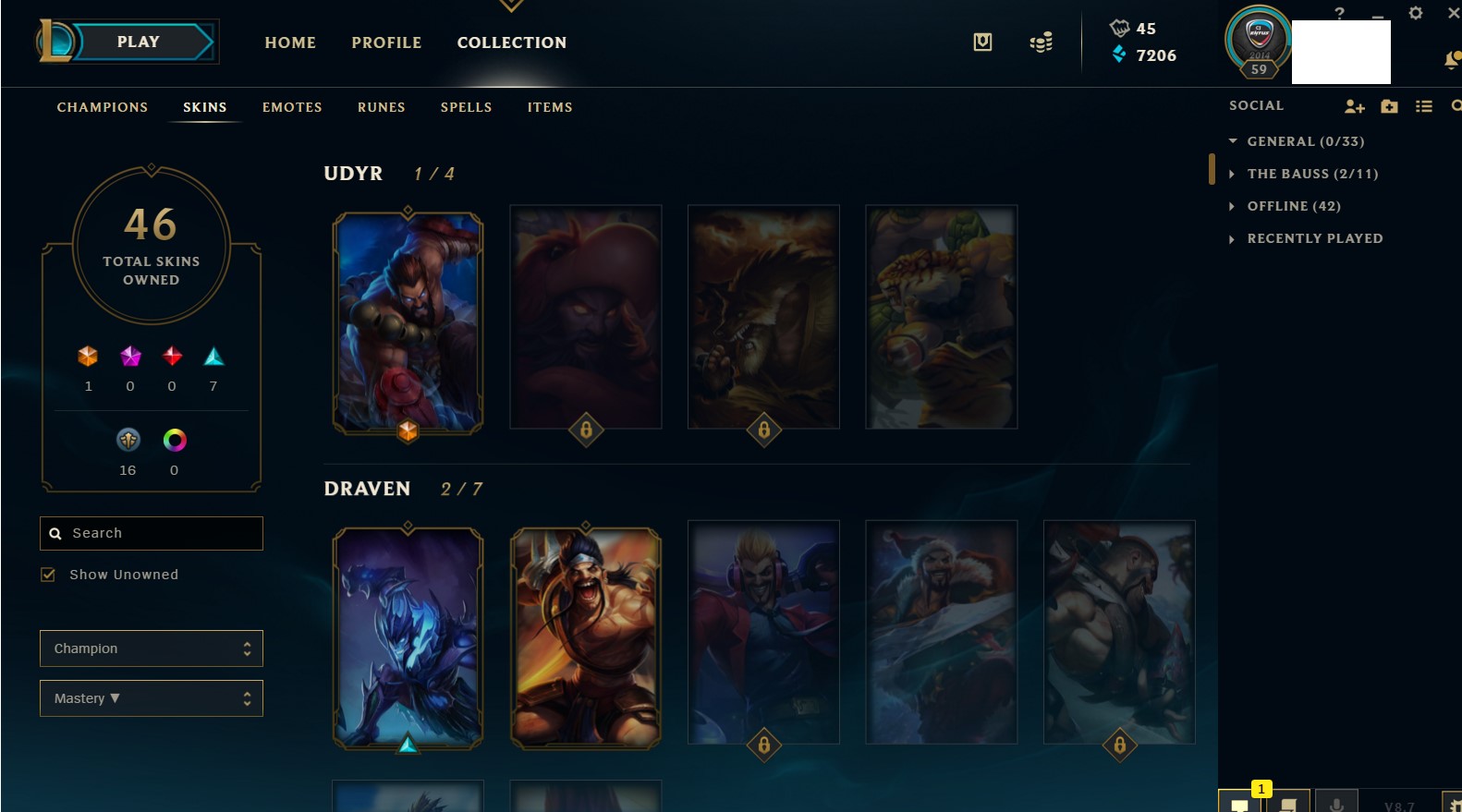 SKIN LIST- Spirit Guard Udyr,Soul Reaver Draven, Gladiator Draven,Thunder Lord Volibear,Nottingham Ezriel,Blood Moon Thresh,Deep Terror Thresh, Championship Thresh,Gangster Twitch,Kingpin Twitch,High Moon Yasuo,Panda Teemo,Rocket Girl Tristana,Buccaneer Tristana,Riot Girl Tristana,PROJECT:ZED,SKT T1 Zed,Night Hunter Rengar,SKT T1 Vayne,Mecha Kha?zix,Dark Candy Fiddlesticks,Pumkinhead Fiddlesticks,Blood Moon Kalista,Warring Kingdoms Jarvan IV,Muay Thai Lee Sin,PROJECT:FIORA,Dragonslayer Braum,Firefang Warwick,Feral Warwick,Grey Warwick,Unchained Alistar,Fisherman Fizz,Candy Cane Miss Fortune,Chamionship Shyvana,Pirate Ryze,Neon Strike VI,Riot Kayle,Chosen Master Yi,Snowstorm Sivir,VICTORIOUS Sivir,Dreadnove Gangplank,Bad Santa Veigar,Grim Reaper Karthus,Mecha Malphite,VICTORIOUS MOAKAI,VICTOURIOUS MORGANA.